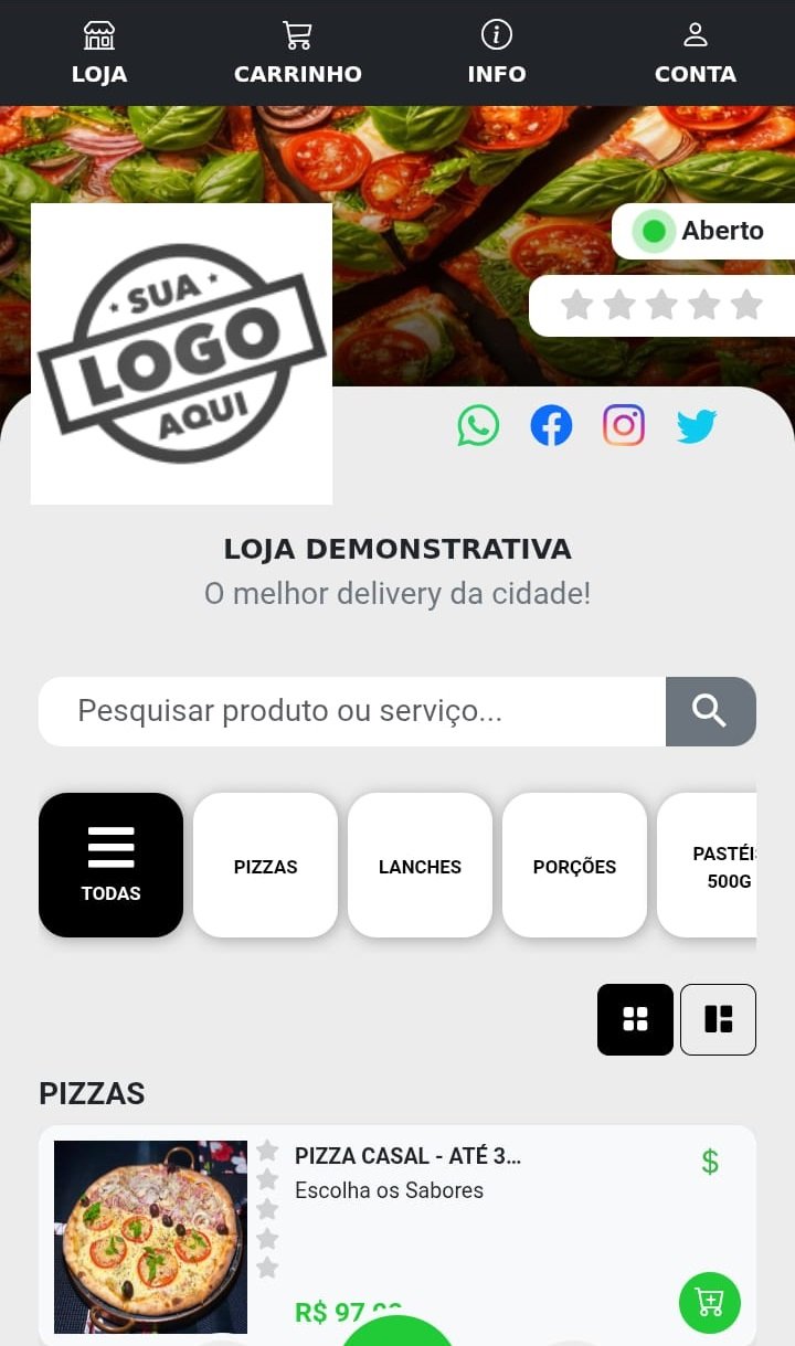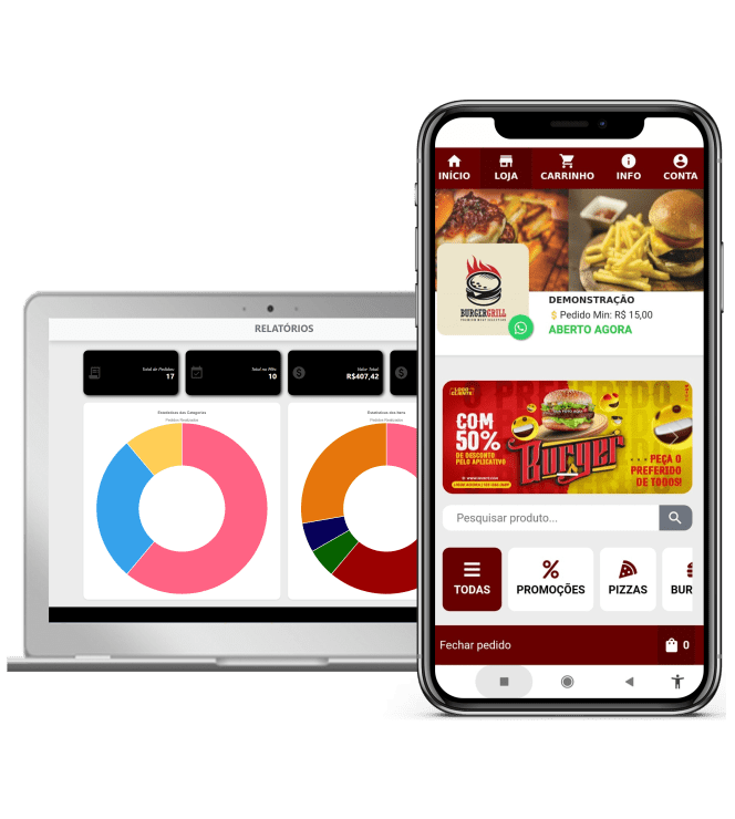 Demonstração do nosso Cardápio e do Painel do Lojista